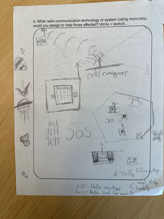 Apply ideas about programming radio devices to plan, design and make a prototype of a radio communication design solution to help those affected by a natural disaster. Use cardboard, craft materials, and BBC micro:bits to make a model radio communication system to send messages.